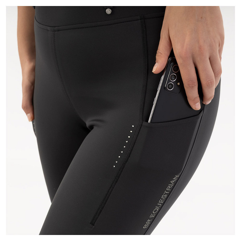 Paardrijlegging met twee zakken met ritssluiting, kristallen en een piping, een tone/tone Just Ride print op de gehele tailleband, zitvlak voorzien van een siliconen print voor extra grip in het zadel en een elastische inzet rond…